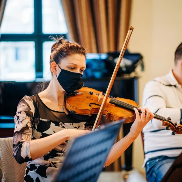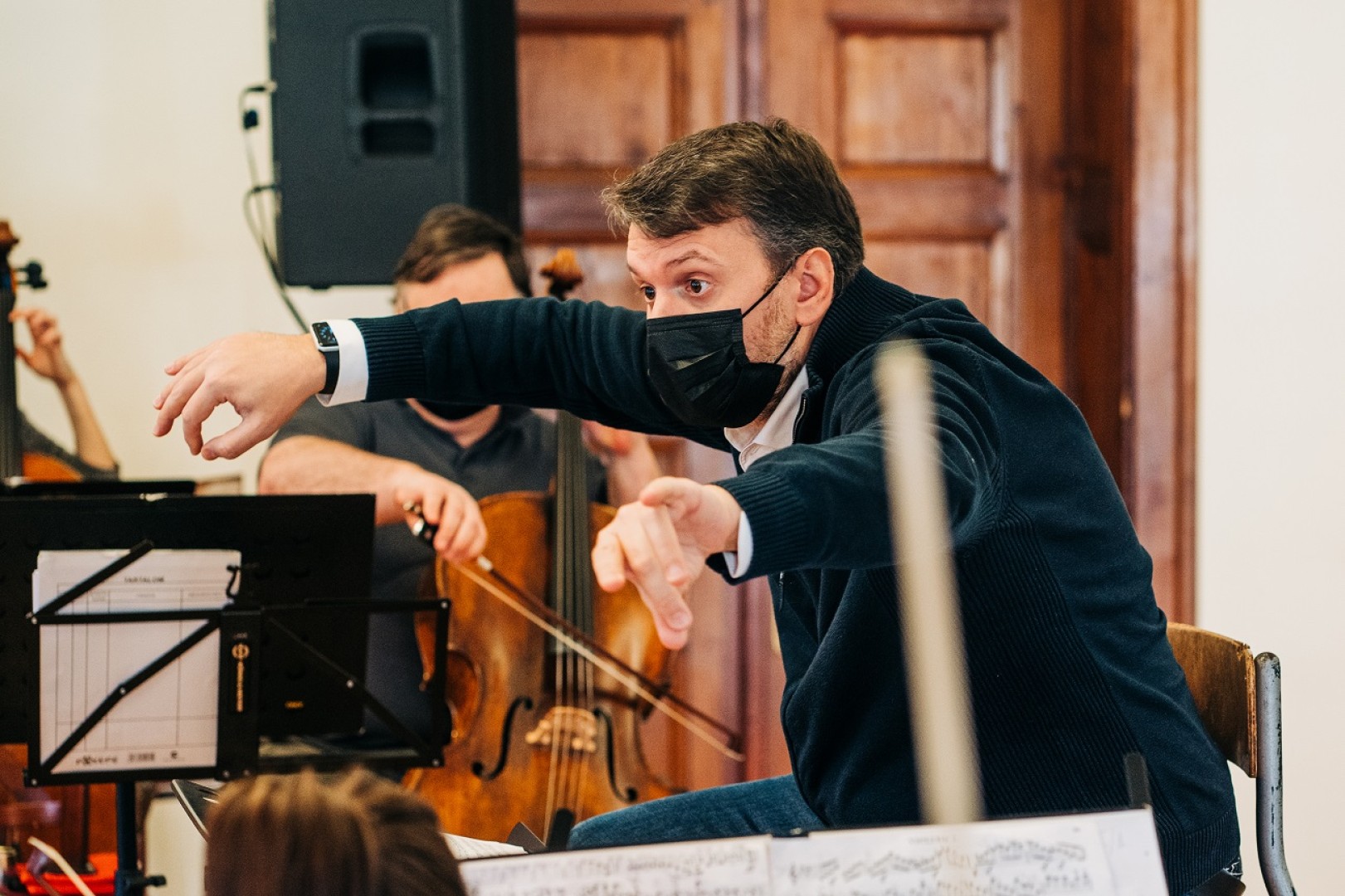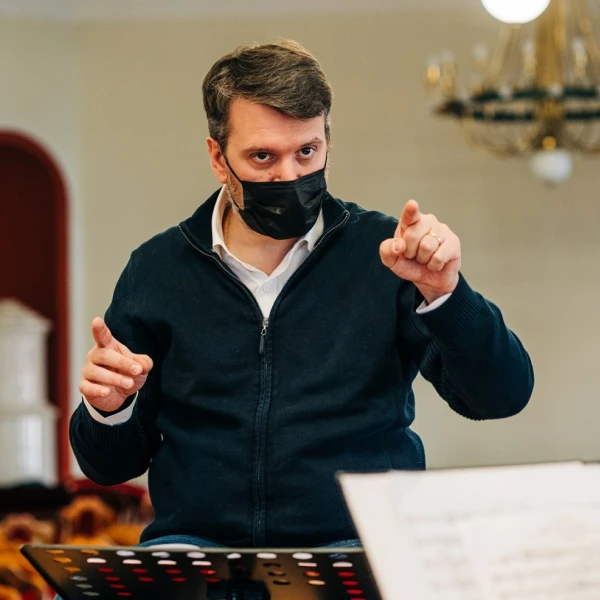 Concert rehearsal with conductor, Mathieu Herzog